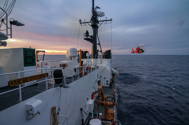 The MORG testing out her turbines at full speed while BOSN and SUPPO soak up the sun Hawaiian style.